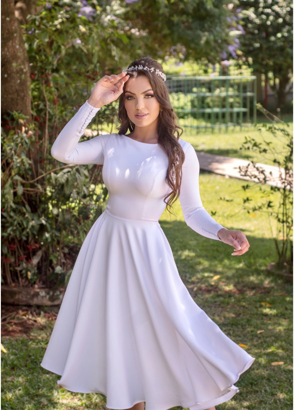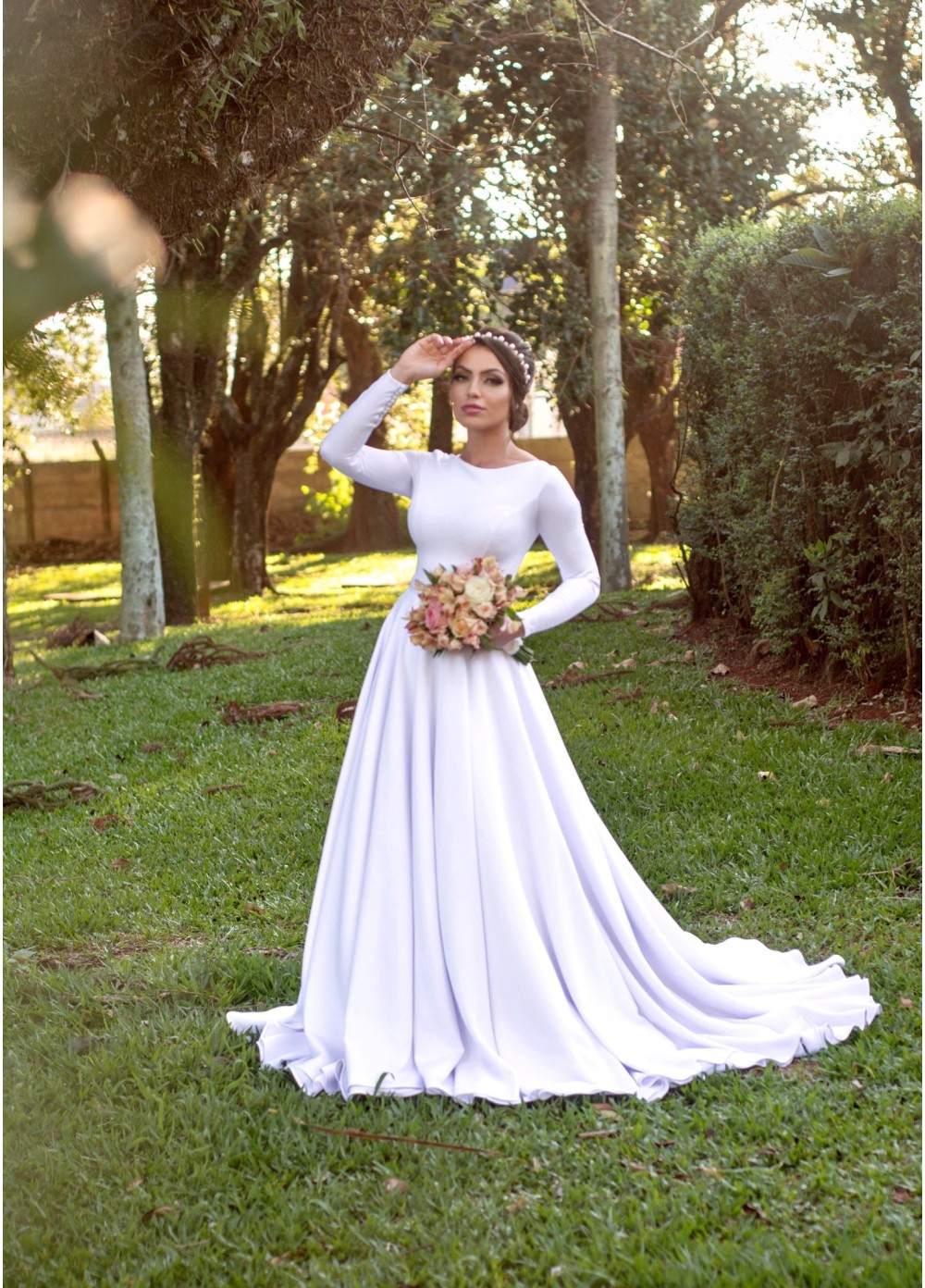 - Acessórios não inclusos no vestido (armação, tiara, brincos, buquê).