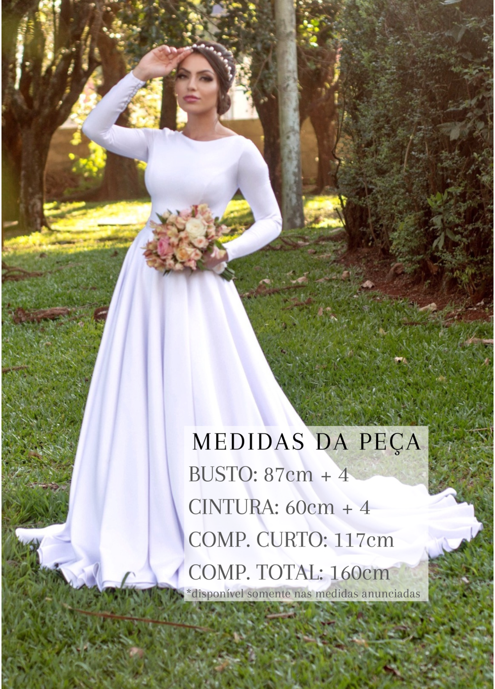 O vestido será disponibilizado apenas nas medidas anunciadas na imagem.