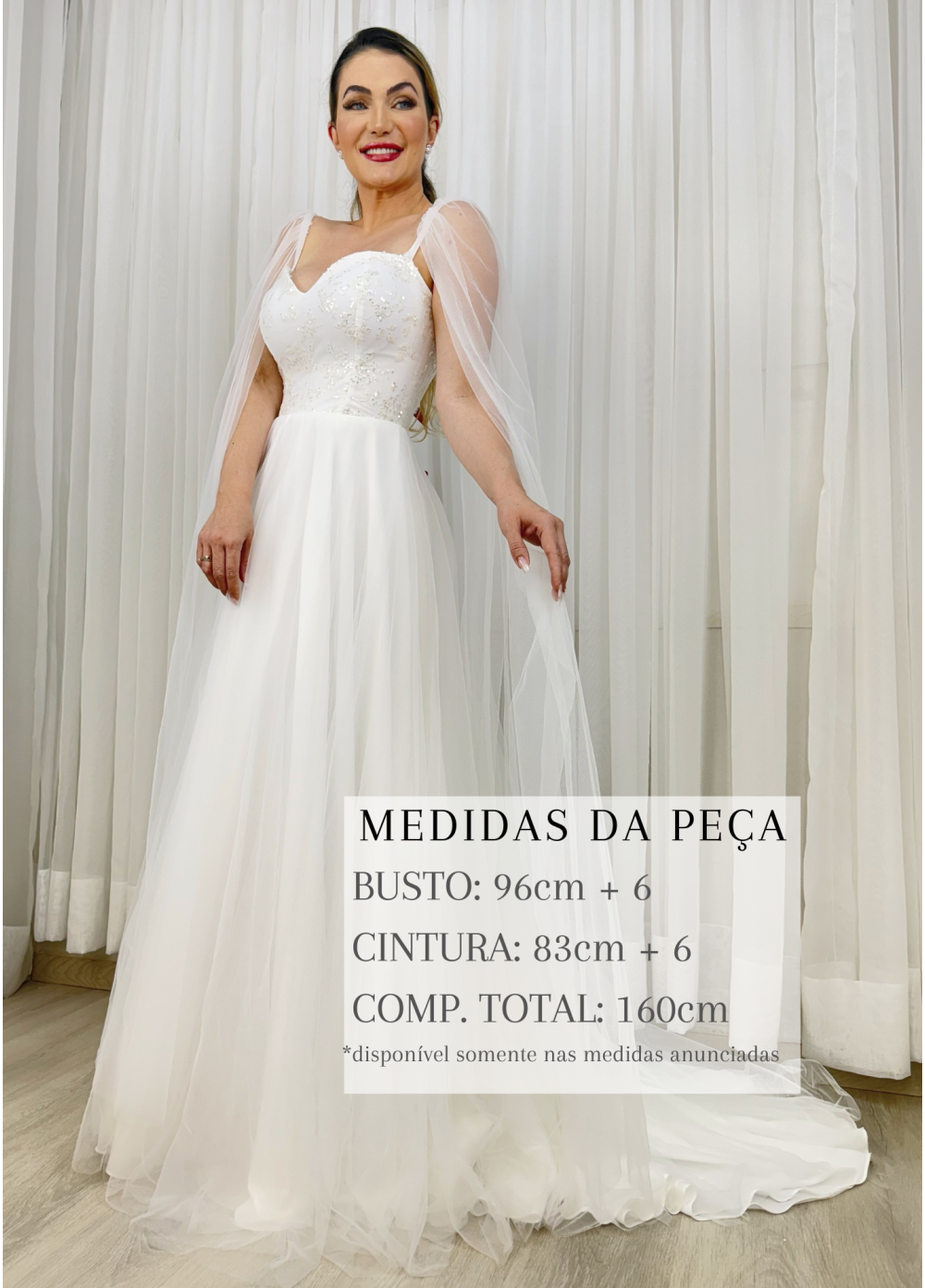 O vestido será disponibilizado apenas nas medidas anunciadas na imagem.