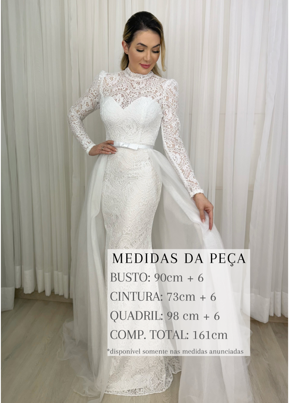 O vestido será disponibilizado apenas nas medidas anunciadas na imagem.