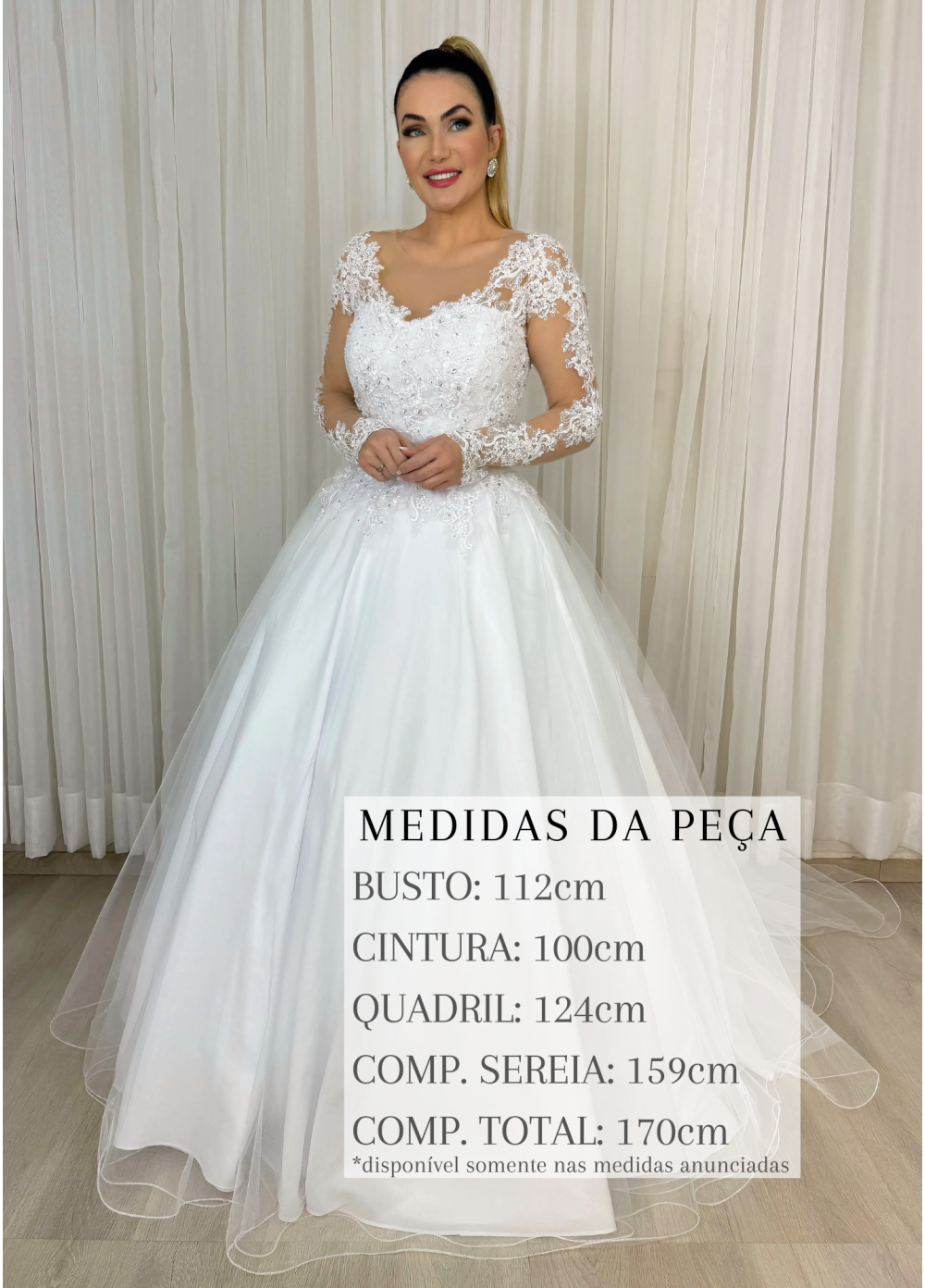 O vestido será disponibilizado apenas nas medidas anunciadas na imagem.