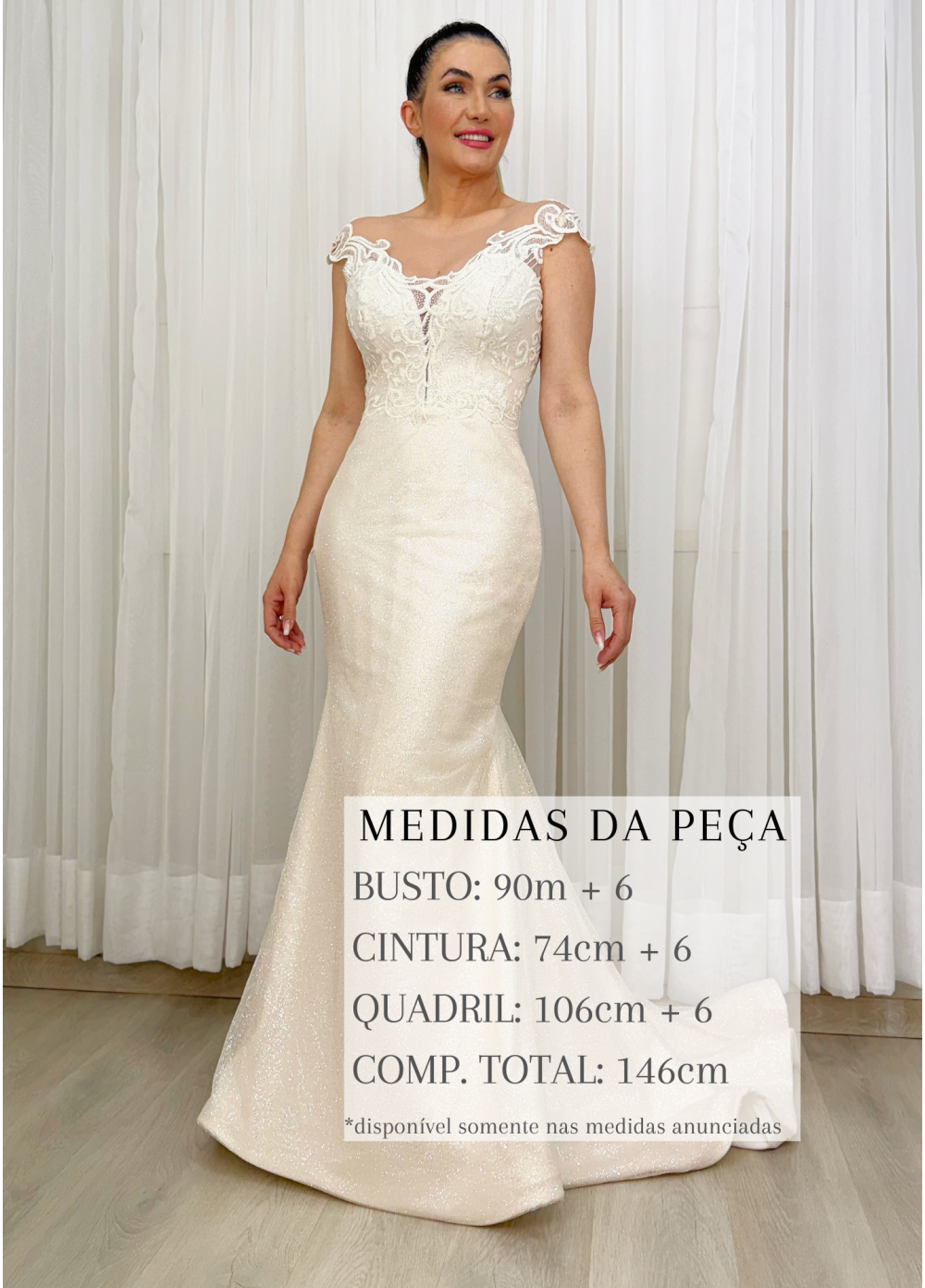 O vestido será disponibilizado apenas nas medidas anunciadas na imagem.